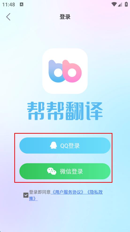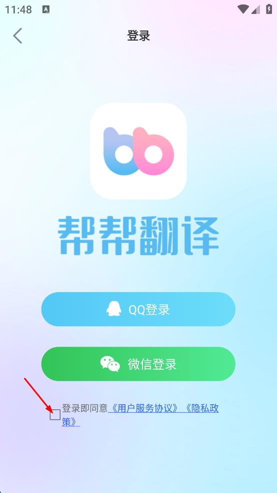 3、在登錄頁面,勾選登錄即同意用戶服務協(xié)議,隱私政策。