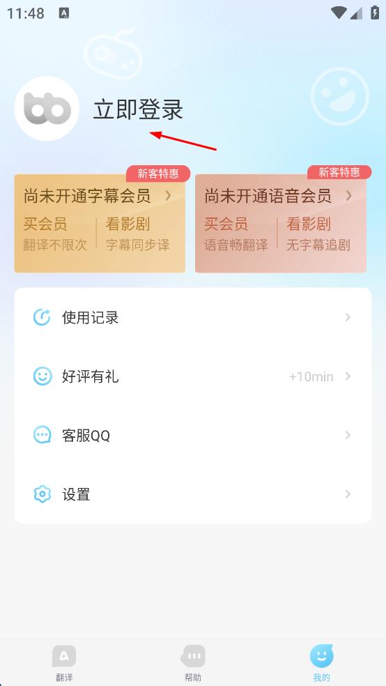1、打開幫幫翻譯軟件,點擊頁面右下角“我的”按鈕,進入個人相關頁面。