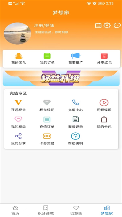 5、進入夢想家頁面,就能知道訂單、收益以及積分等信息