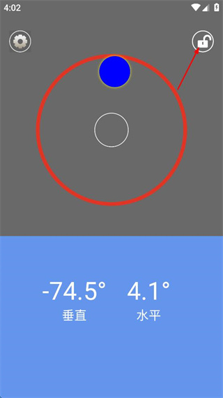3、返回主界面,點(diǎn)擊右上角鎖定圖標(biāo),鎖定當(dāng)前角度數(shù)據(jù)。