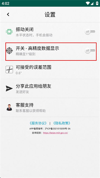 2、在設(shè)置頁(yè)面找到開(kāi)關(guān)-高精度數(shù)據(jù)顯示,將其開(kāi)啟。