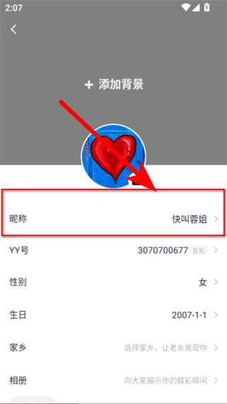 3、在資料編輯頁面,點(diǎn)擊頭像區(qū)域,選擇新的頭像圖片。