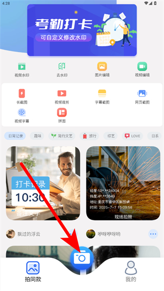 4、點(diǎn)擊底部的拍攝按鈕進(jìn)行打卡拍照,即可完成打卡操作。