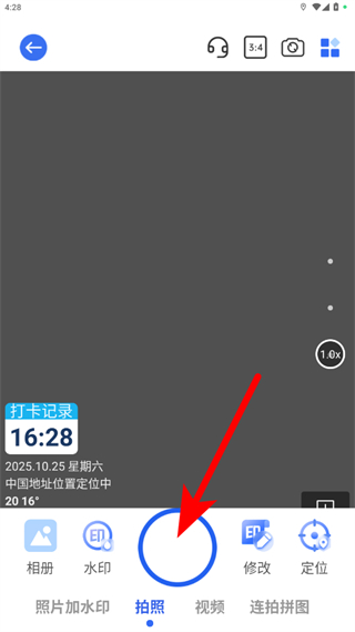 1、打開萬能水印相機(jī)應(yīng)用,點(diǎn)擊底部的相機(jī)按鈕。