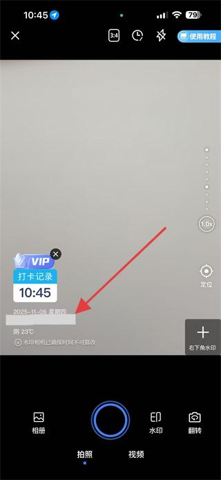 1、打開萬能水印相機(jī)打卡APP,點(diǎn)擊水印區(qū)域的時(shí)間部分,進(jìn)入修改水印頁面。