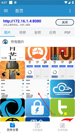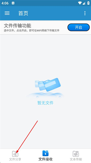 2、在文件分享頁面,點擊“開啟”按鈕,啟用文件傳輸功能。