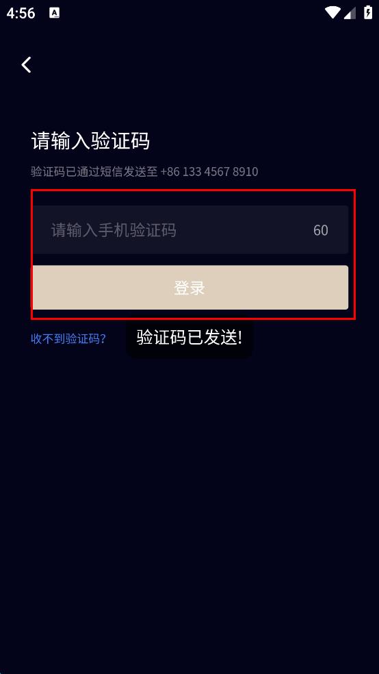 4、輸入收到的手機(jī)驗(yàn)證碼,點(diǎn)擊登錄按鈕。