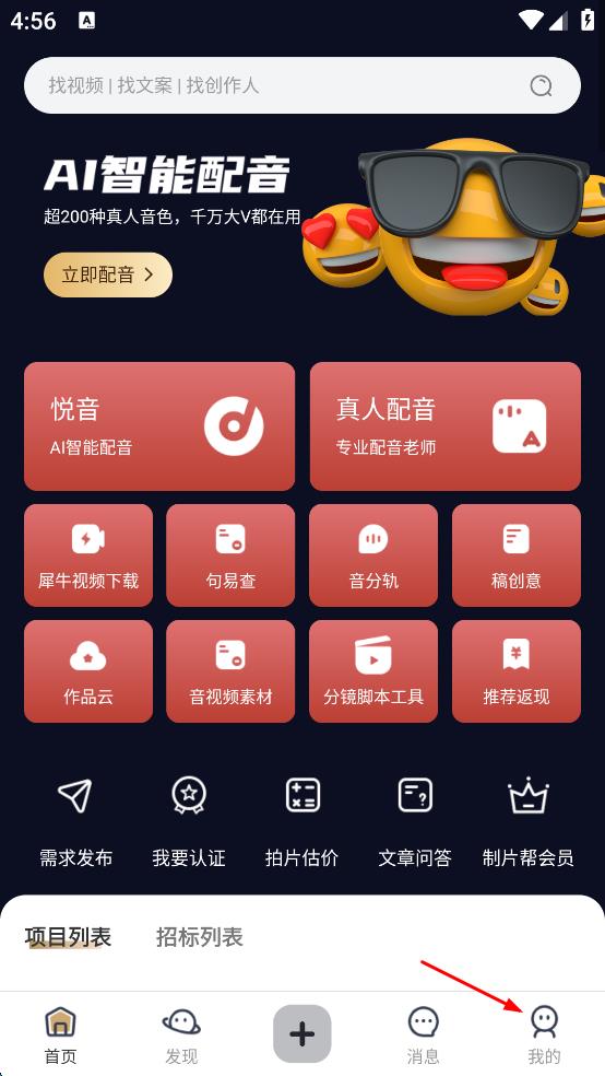 1、打開制片幫APP首頁,點(diǎn)擊右下角我的按鈕。