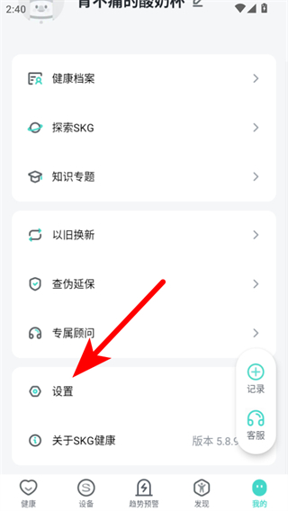1、打開SKG健康APP,點擊底部導航欄的我的選項,進入個人頁面。