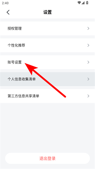 3、在設置界面里,點擊賬號設置選項,進入賬號設置頁面。