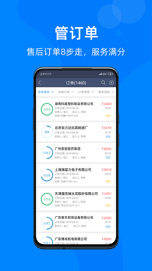 訂單功能:產(chǎn)品配置與定價、訂單流程、線上審批、現(xiàn)場服務(wù)記錄、客戶反饋評價