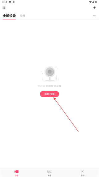 1、打開水星安防監(jiān)控APP,在首頁點(diǎn)擊添加設(shè)備的按鈕。