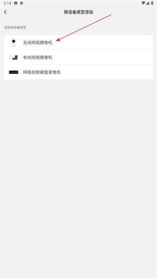 2、進(jìn)入設(shè)備類型添加的頁面內(nèi),點(diǎn)擊無線網(wǎng)絡(luò)攝像機(jī)的按鈕。
