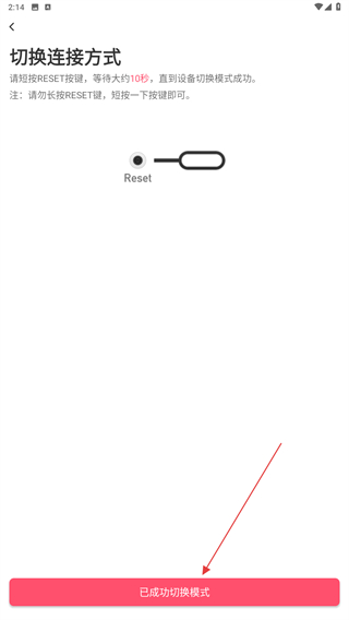 3、在切換連接方式的頁面內(nèi),點(diǎn)擊下方已成功切換模式的按鈕。