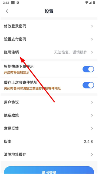 3、在設(shè)置頁面點擊賬號注銷選項,進入注銷賬號頁面。