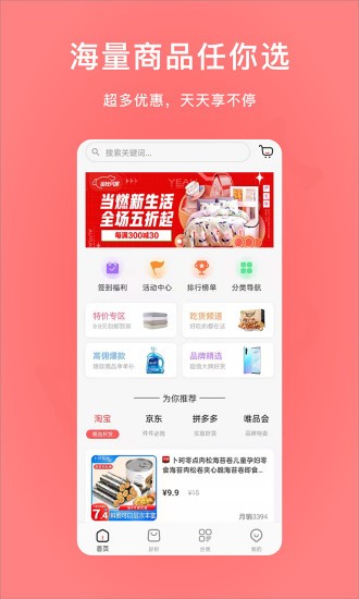 大量低價(jià)優(yōu)惠的產(chǎn)品供用戶自由選擇,無(wú)論想買什么都可以省錢;