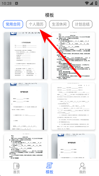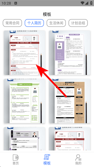 2、在模板頁面,點擊個人簡歷分類,進入個人簡歷模板列表。
