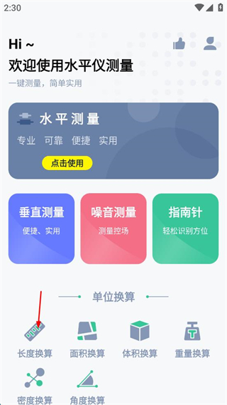 3、返回軟件首頁,點(diǎn)擊“單位換算”板塊“長度換算”選項(xiàng)。