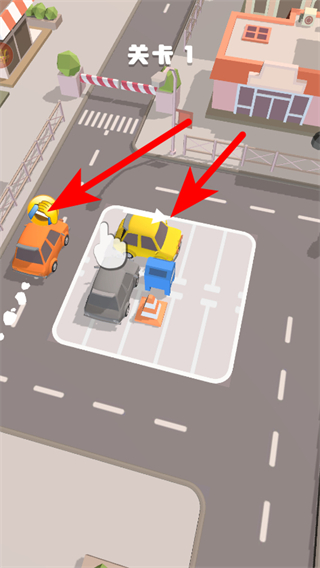 1、在老板挪個(gè)車2游戲關(guān)卡1界面,觀察車輛位置,按照提示移動(dòng)黃色車輛。