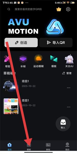 1.打開美冊軟件,點擊底部的模板按鈕進(jìn)入模板選擇界面。