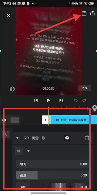 4.進(jìn)入編輯界面后,可對模板中的3D效果、歌詞樣式等參數(shù)進(jìn)行調(diào)整,編輯完成后點擊右上角的保存或?qū)С霭粹o,即可完成3D魔秀作品的創(chuàng)作。