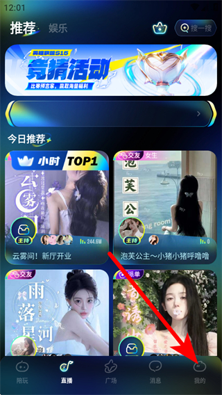 1、打開(kāi)不鴿電競(jìng)應(yīng)用,點(diǎn)擊底部導(dǎo)航欄的我的選項(xiàng)。