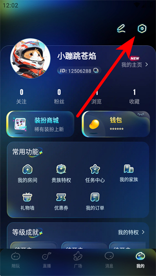 2、在個(gè)人頁(yè)面中,點(diǎn)擊右上角的設(shè)置圖標(biāo)。