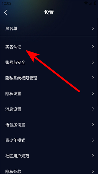 3、進(jìn)入設(shè)置頁(yè)面后,點(diǎn)擊實(shí)名認(rèn)證選項(xiàng)。
