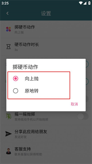 支持拋投時間,以及音效的設置,大程度還原真實拋硬幣的體驗