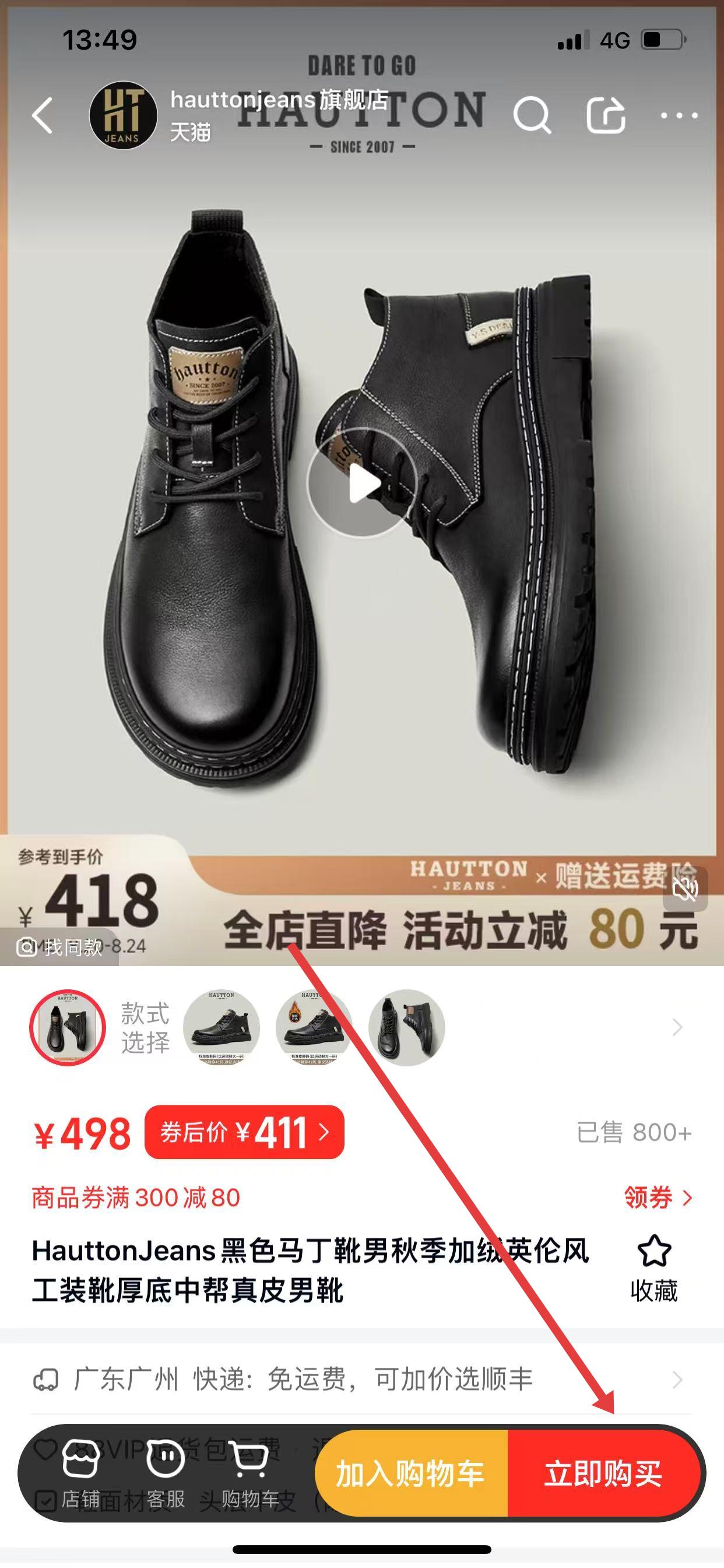 2、進入商品詳情頁,點擊右下角的立即購買。