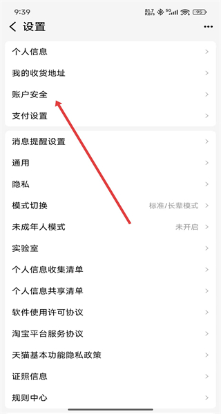 1、要是想修改登錄密碼,可以在設置頁面中點擊賬戶安全選項進入設置。