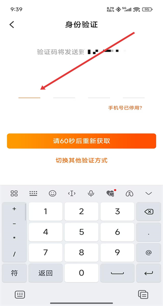 3、在進入到驗證頁面后,需點擊輸入框填寫發(fā)送到手機上的驗證碼后,即可開始修改操作。