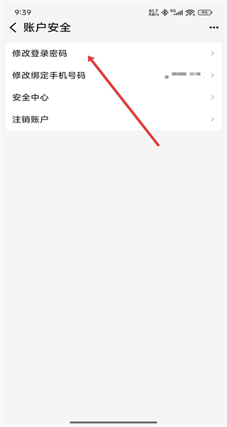 2、在進入到賬戶安全頁面后,可以點擊修改登錄密碼選項,進行修改操作。