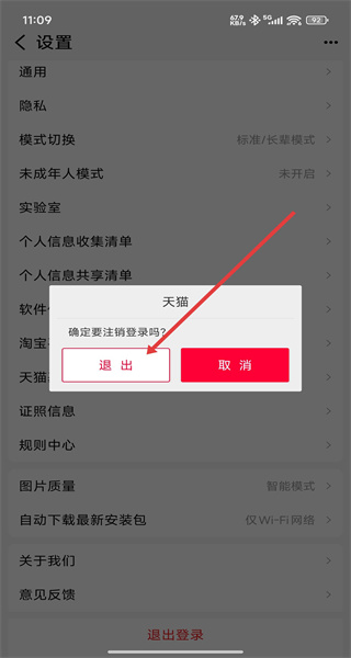 3、設置頁面點擊“退出登錄”,彈出注銷登錄確認彈窗。