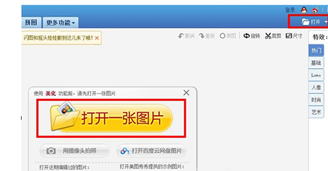 界面中選擇打開,點(diǎn)擊“打開一張圖片”。