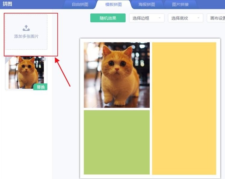 進(jìn)入拼圖的效果,這里只有一張圖片,可以點(diǎn)擊添加多張圖片。