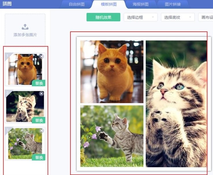 自由拼圖、模版拼圖、圖片拼接三種經(jīng)典拼圖模式,多張圖片一次曬出來。
