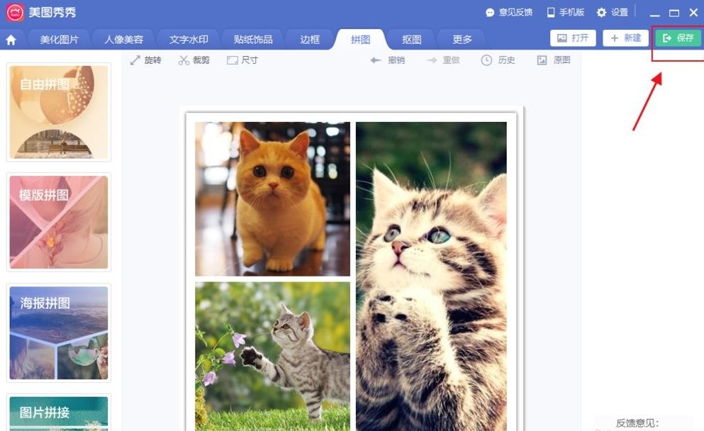 拼圖成功之后,記得點(diǎn)擊右上角的保存,這樣就能保存拼好的圖片了。