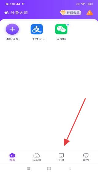 1、啟動分身大師APP,在首頁下方導航欄中點擊切換工具的圖標。