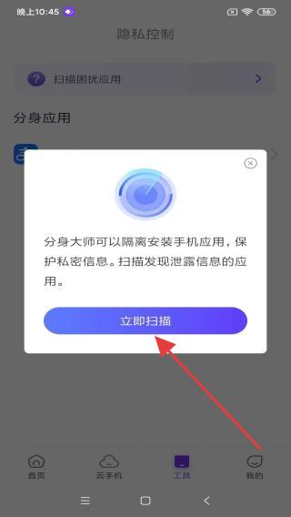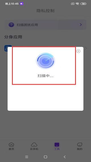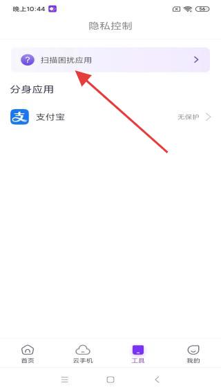 2、在隱私控制的頁面內(nèi),點擊掃描困擾應用的區(qū)域。