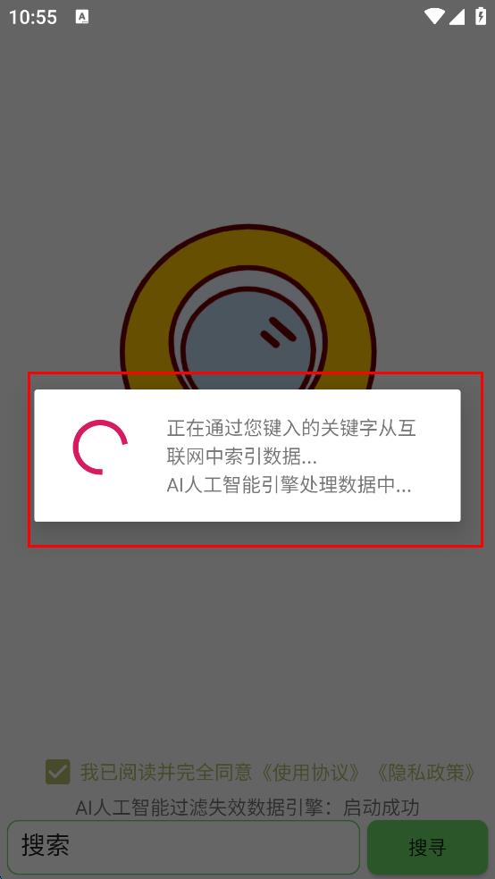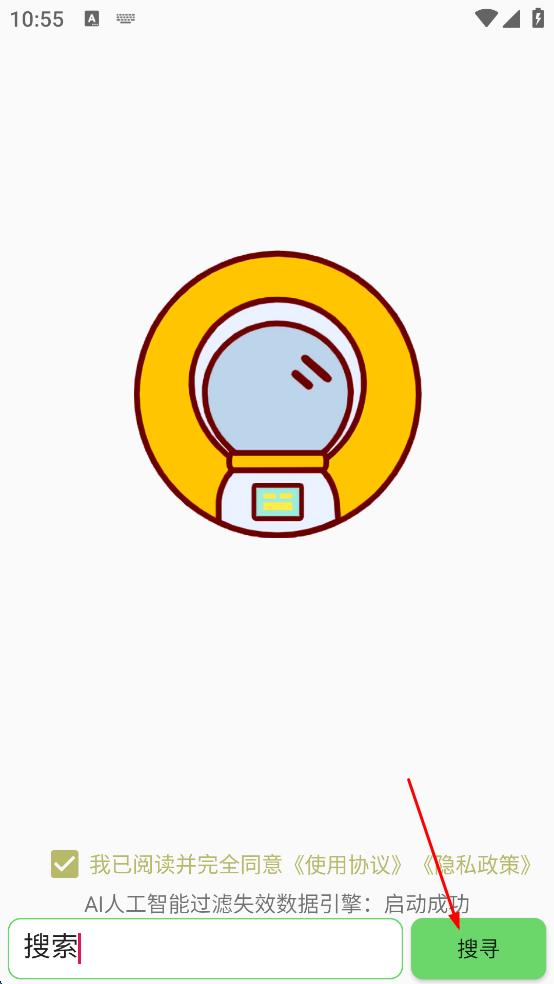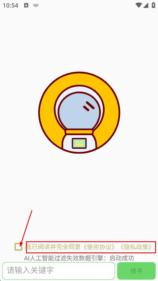 1、打開搜索軟件,勾選我已閱讀并完全同意使用協(xié)議,隱私政策。