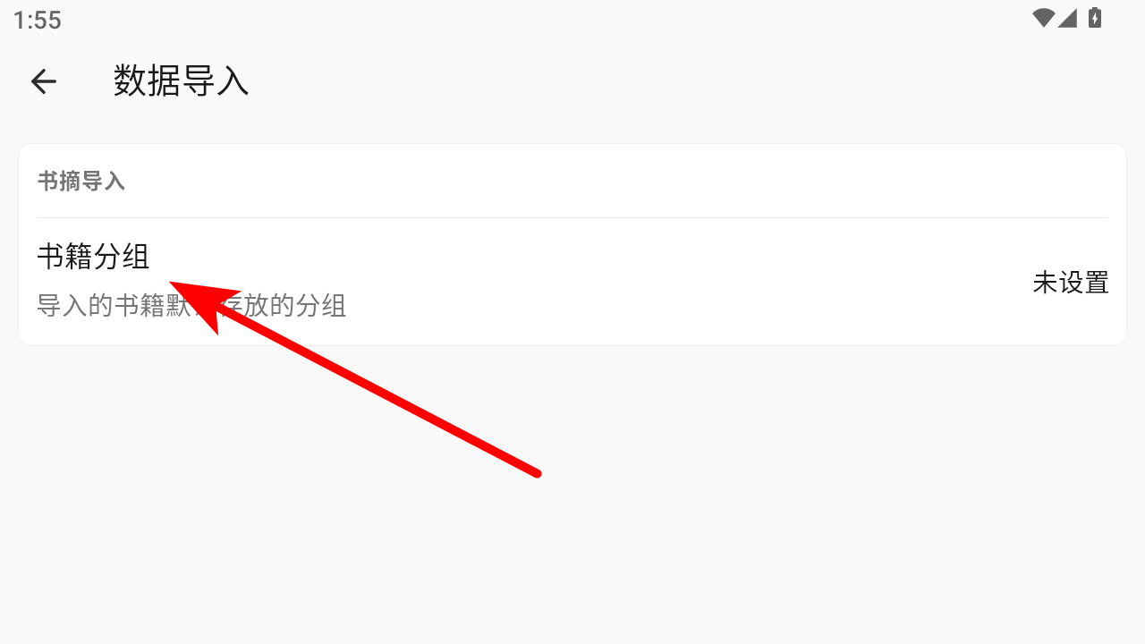 4、在數據導入頁面,點擊書籍分組選項,即可進行書籍數據的導入操作。