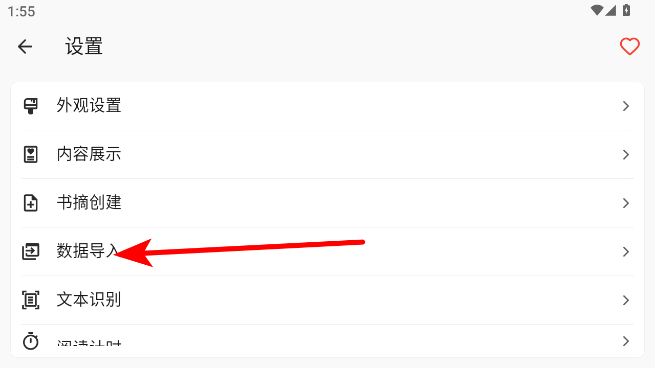 3、在設置頁面,點擊數據導入選項,進入數據導入頁面。