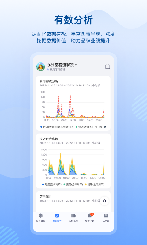 展示門店信息,包括門店客流、貨架客流以及設(shè)備組數(shù)量,門店動態(tài)情況隨時掌握