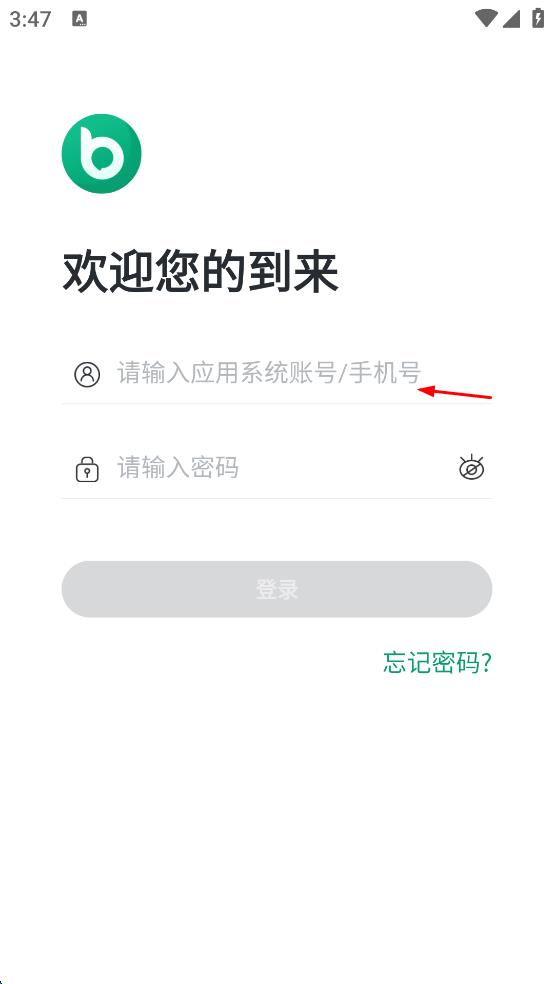 2、進(jìn)入登錄頁面,在應(yīng)用系統(tǒng)賬號(hào)/手機(jī)號(hào)輸入框中輸入手機(jī)號(hào)碼。