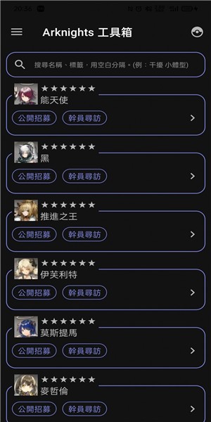 軟件集合干員圖鑒、素材計(jì)算及刷取建議、招募抽卡模擬器等等功能。