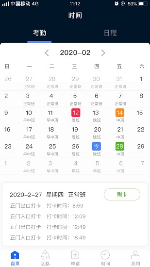 首頁(yè),團(tuán)隊(duì),申請(qǐng),時(shí)間,我的,完美了覆蓋員工的所有的操作,并且提供的便捷的入口。