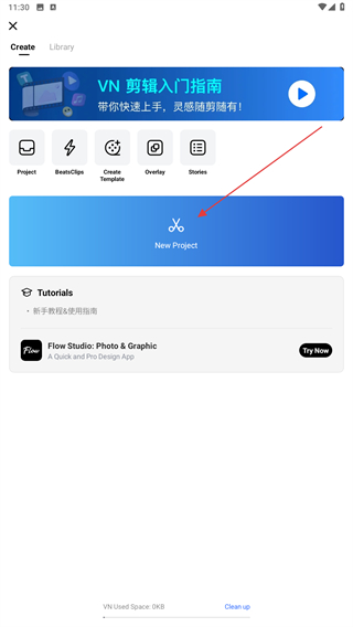 1、打開vn視頻剪輯的APP,進入是點擊剪輯的按鈕。