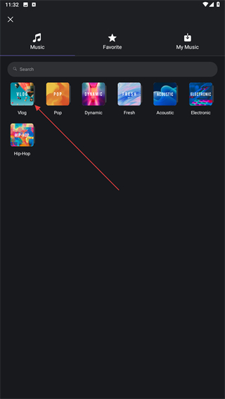 4、在音樂選擇的界面內(nèi),選擇并點擊音頻即可導(dǎo)入成功。
