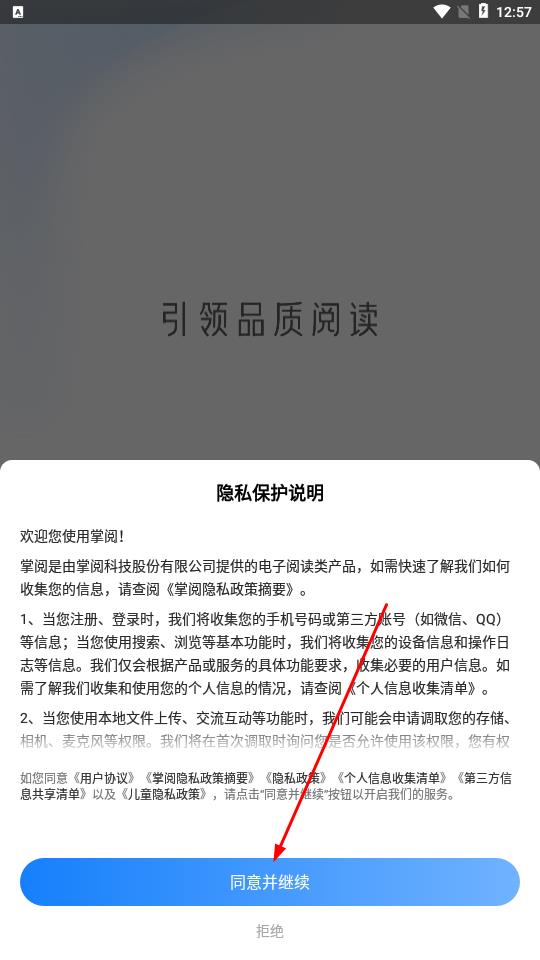 1、在隱私保護(hù)說(shuō)明頁(yè)面,然后就可以點(diǎn)擊同意并繼續(xù)按鈕,接受相關(guān)協(xié)議以使用服務(wù)。